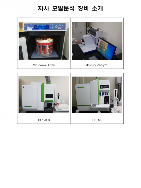 ☞ 자사의 경우에는 ICP-MS, ICP-AES, Mercury analyzer를 모두 사용합니다.